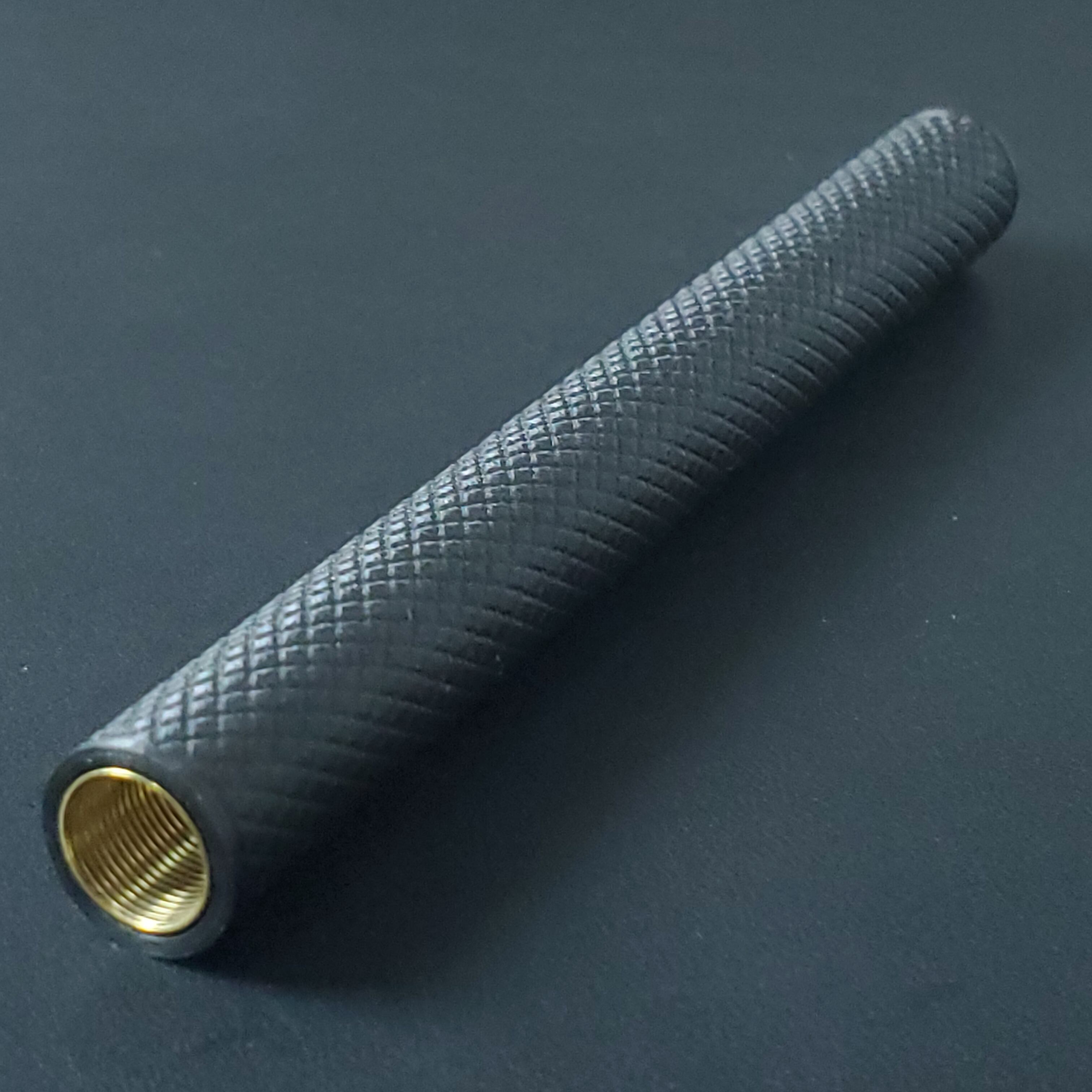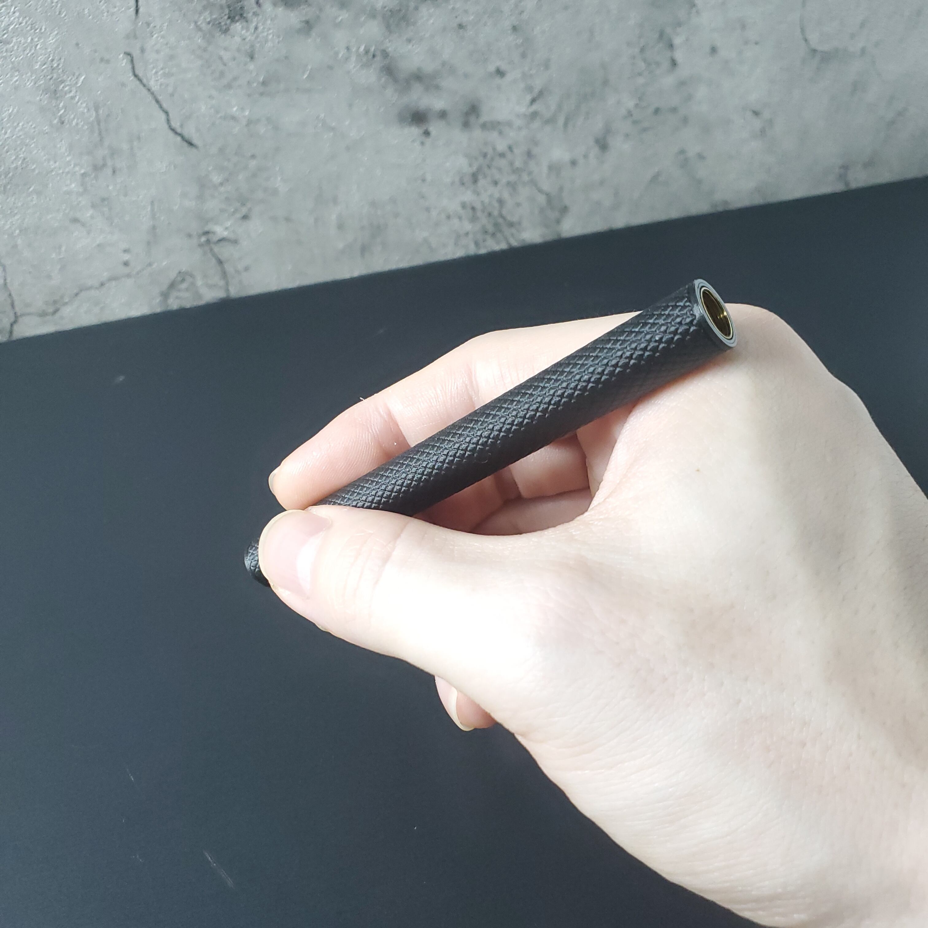 「ローレット01 カーボンブラック」は、カーボンファイバーを配合したPLA-CFを使用し、ボディ全体にローレット模様をデザインとして取り入れることで、カーボン特有の質感を最大限味わえるようデザインしました。カーボンならではのマットでありながら微細な光沢を放つ質感によって上品で高級感のある色味に仕上がっています。手にすると伝わる、わずかなのザラつきが心地良く、つい手に取りたくなる一本です。