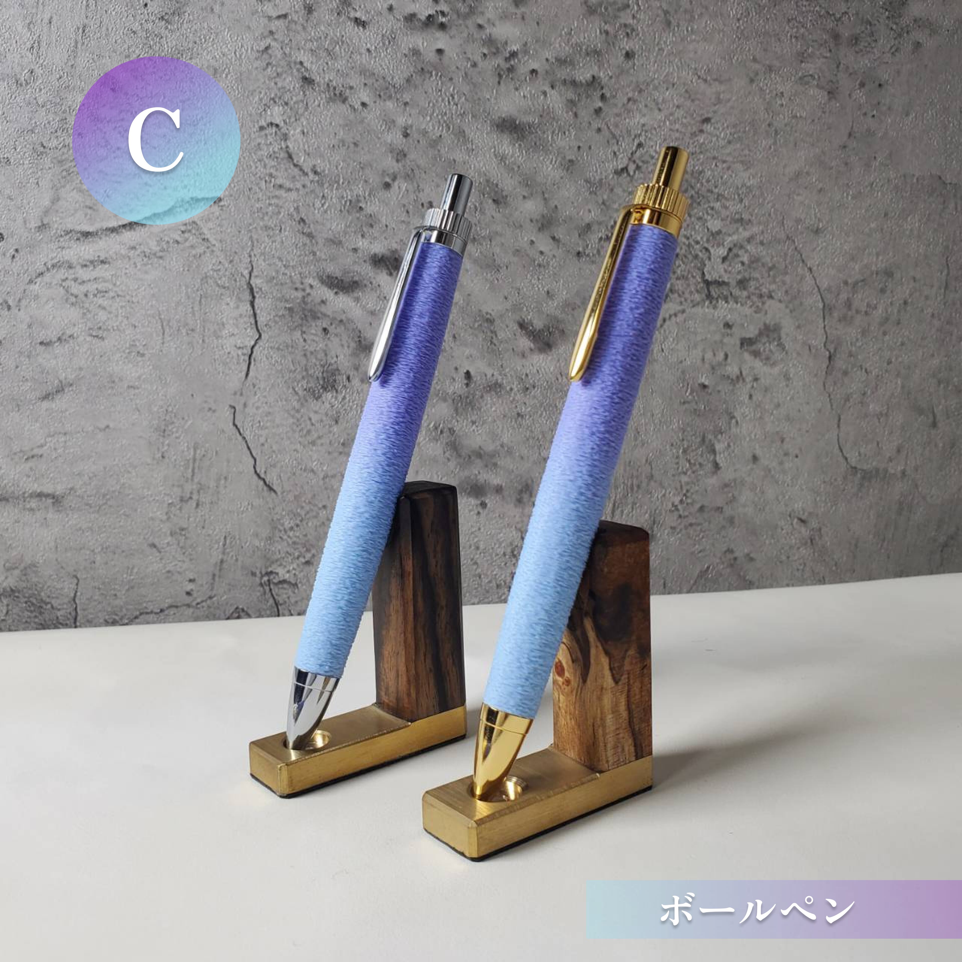 C:(ペン先側)水色→紫(クリップ側)のパターン。水色と紫の比率が半々。