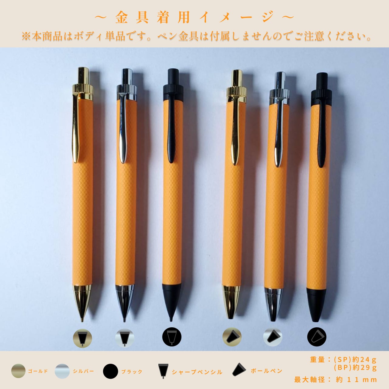 ■ペン金具カラーはシルバー(クロームメッキ)とゴールド(金メッキ)の2色展開です。
