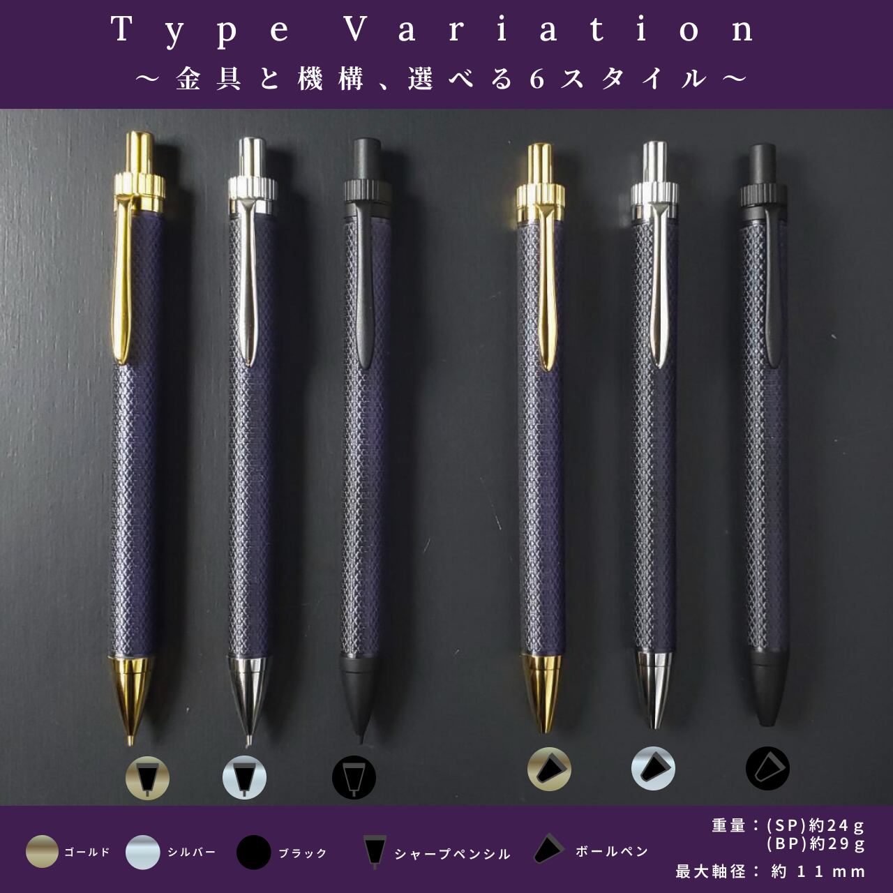 ■ペン金具カラーはシルバー(クロームメッキ)とゴールド(金メッキ)の2色展開です。