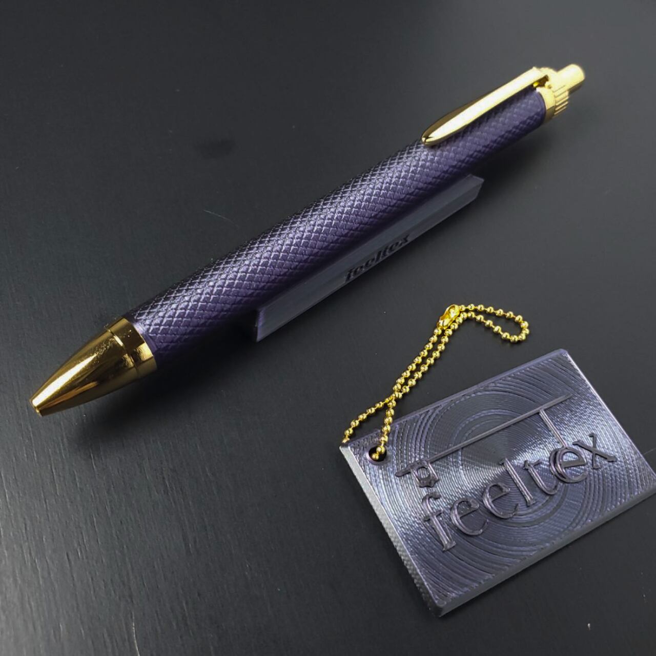 やや目が粗めの綾目模様のローレットデザインをあらかじめボディ全体に設計し、3Dプリンターで造形することで、まるで本物のローレット加工が施されているかのような独特の質感を実現しました。工業的な切削加工とは違った3Dプリンターならではのデザインと手触りに仕上がっています。