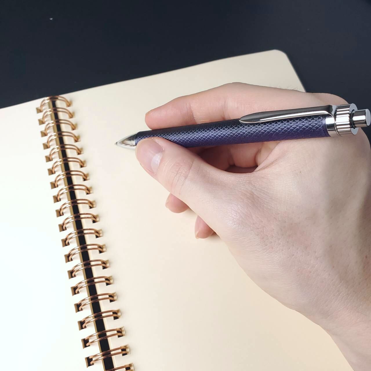 ■ボールペンのノック感はかなり軽く、付属のシュミットのリフィルはだまになったり滲んだりしにくく書きやすい印象です。