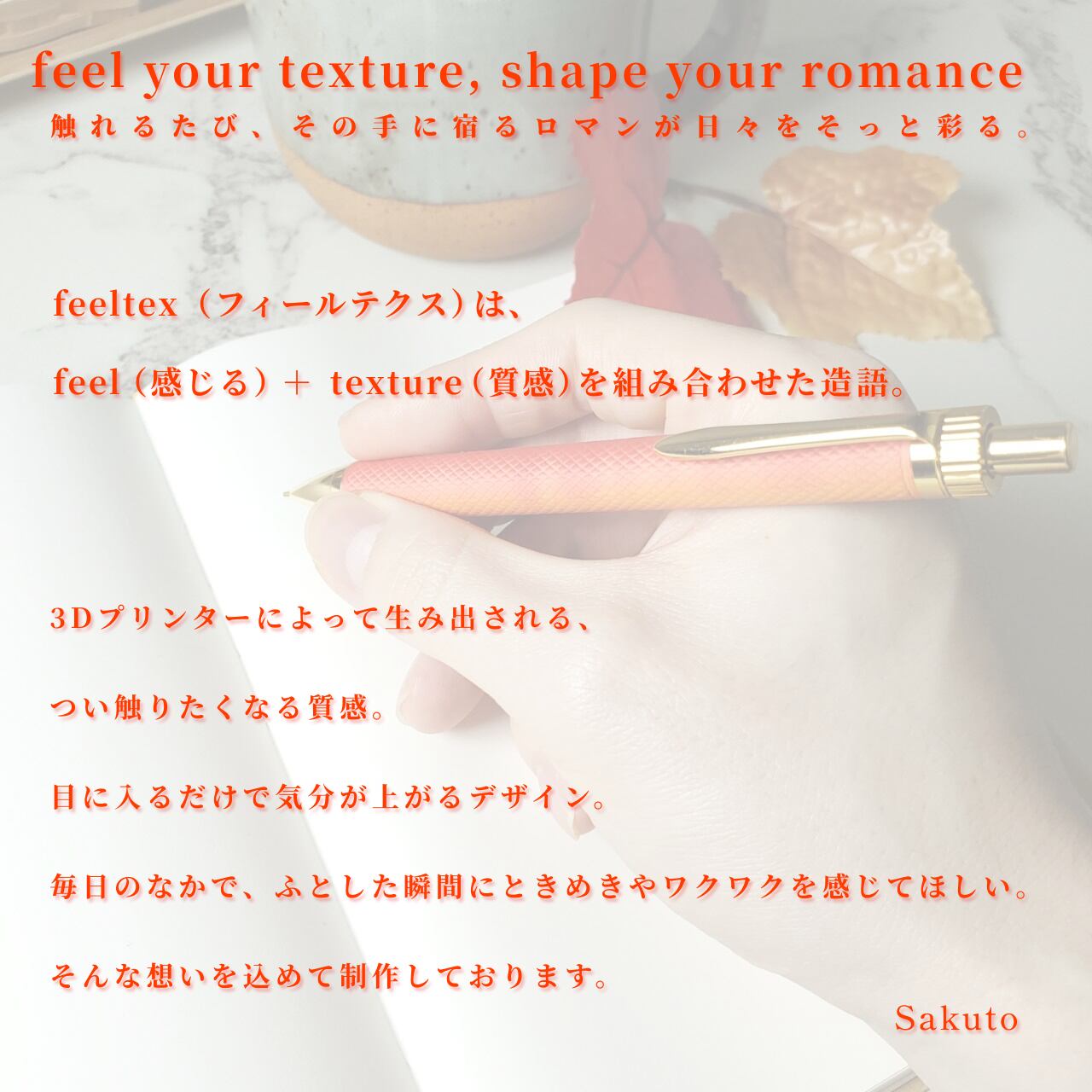 やや目が粗めの綾目模様のローレットデザインをあらかじめボディ全体に設計し、3Dプリンターで造形することで、まるで本物のローレット加工が施されているかのような独特の質感を実現しました。工業的な切削加工とは違った3Dプリンターならではのデザインと手触りに仕上がっています。